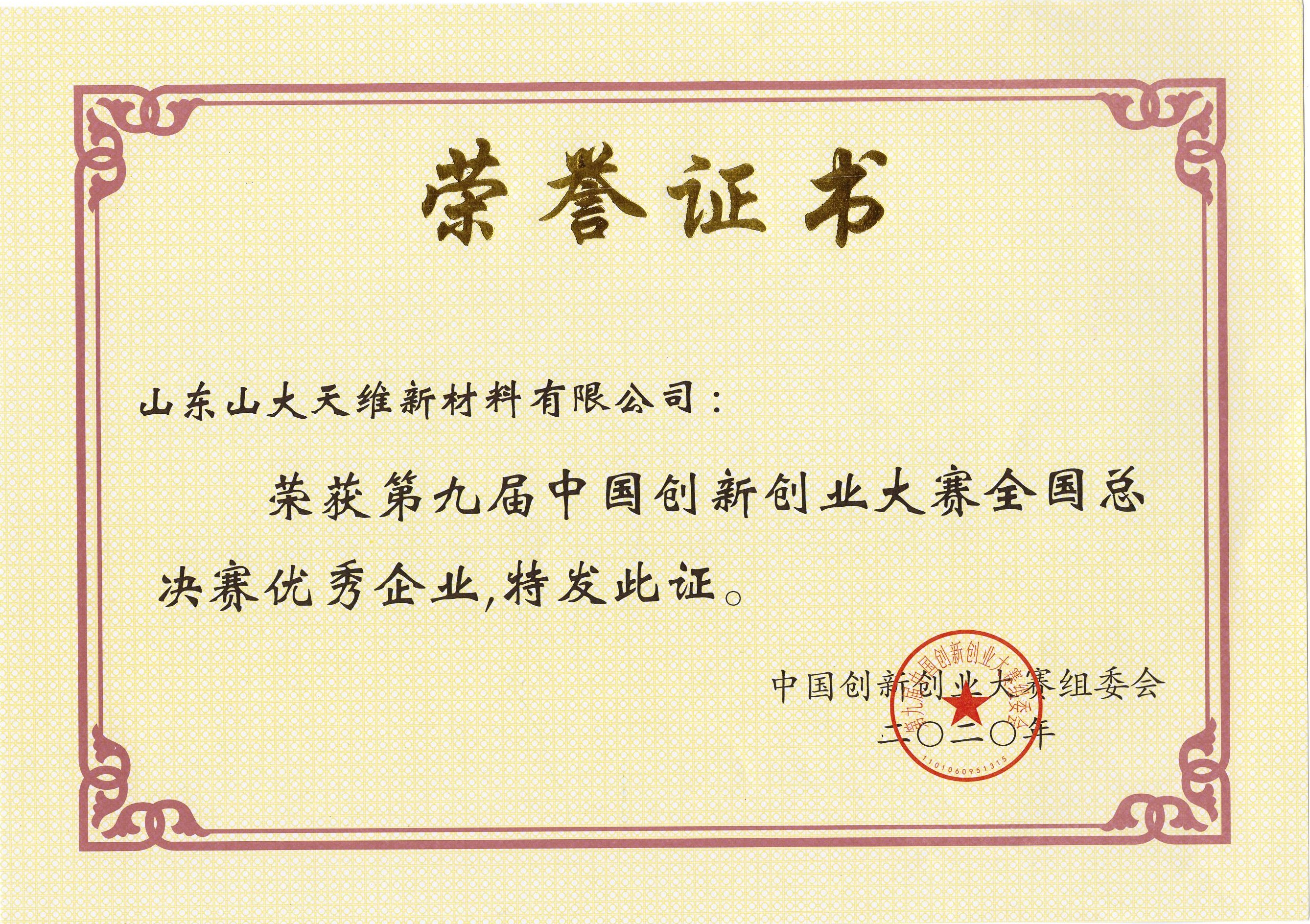 荣获第九届中国创新创业大赛全国总决赛优秀企业
