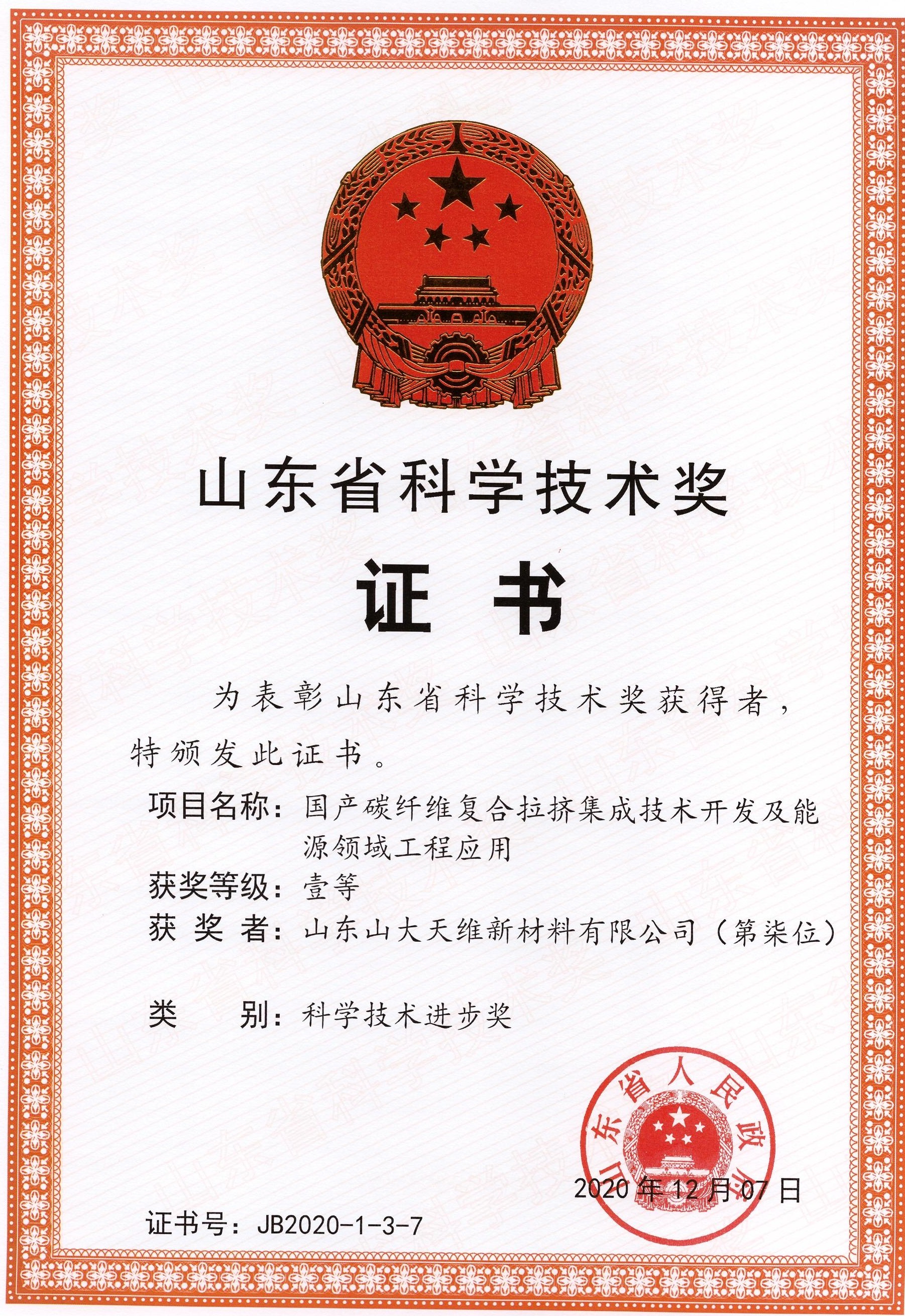 2020年荣获山东省科学技术进步一等奖